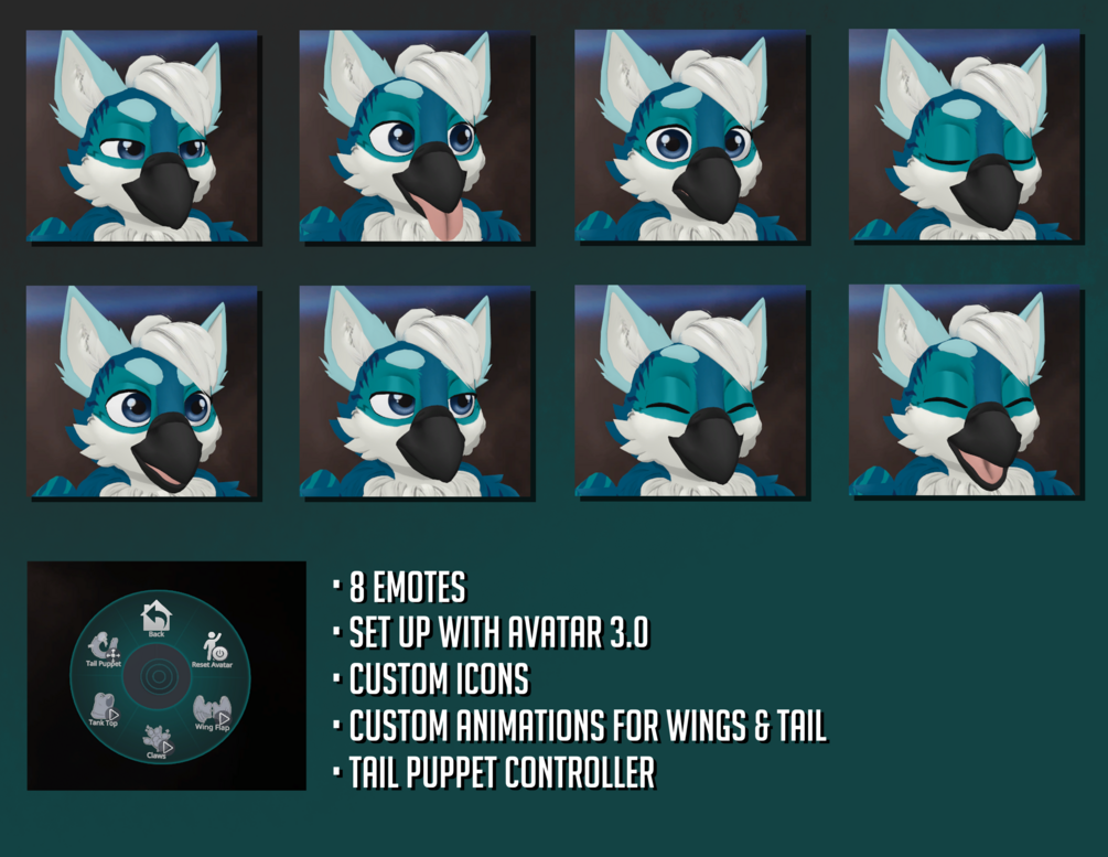 • Lip sync, emotes, Tail puppet, wing flap animation and more!