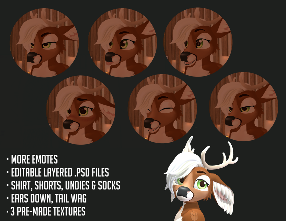• Multiple emotes! Physbones set up for ears, tail and hair